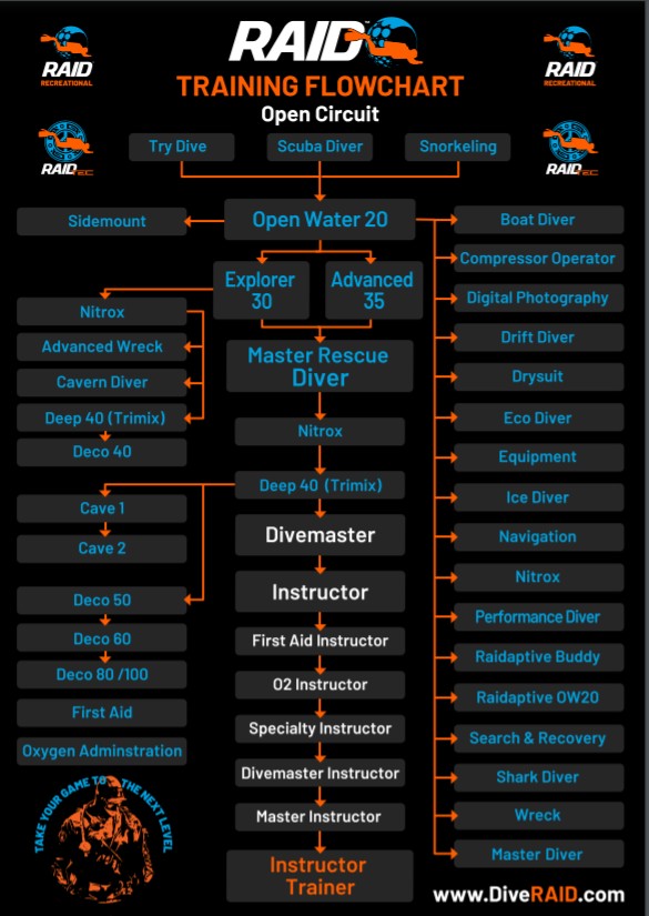 RAID'in onlarca farklı Uzmanlık eğitimi programları ile dalış maceranıza devam edip,maceranızı daha ileri seviyeye taşıyabilirsiniz.